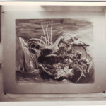 We took notes on a few rudimentary decorative processes, under and over glaze brush treatments, sgraffito, wax resist. I only remember a single glaze being available, a white tin glaze fired at earthenware temperature. We decorated purely with brushed on oxide mixtures to get blacks and reddish browns, and I learnt to use the effect achieved by brushing on a solution of copper carbonate, brushing off the coating when dry, as one judged necessary, to pick up texture on the bisque fired clay, pick out incised or impressed patterning but also, with a thin deposit, to colour the clay surface with a semblance of the “toasted” look gained in reduction firing, which was not available to us. We also learnt inlaying with coloured slips. That was about all! We only had one day a week in the pottery, unlike other classes.